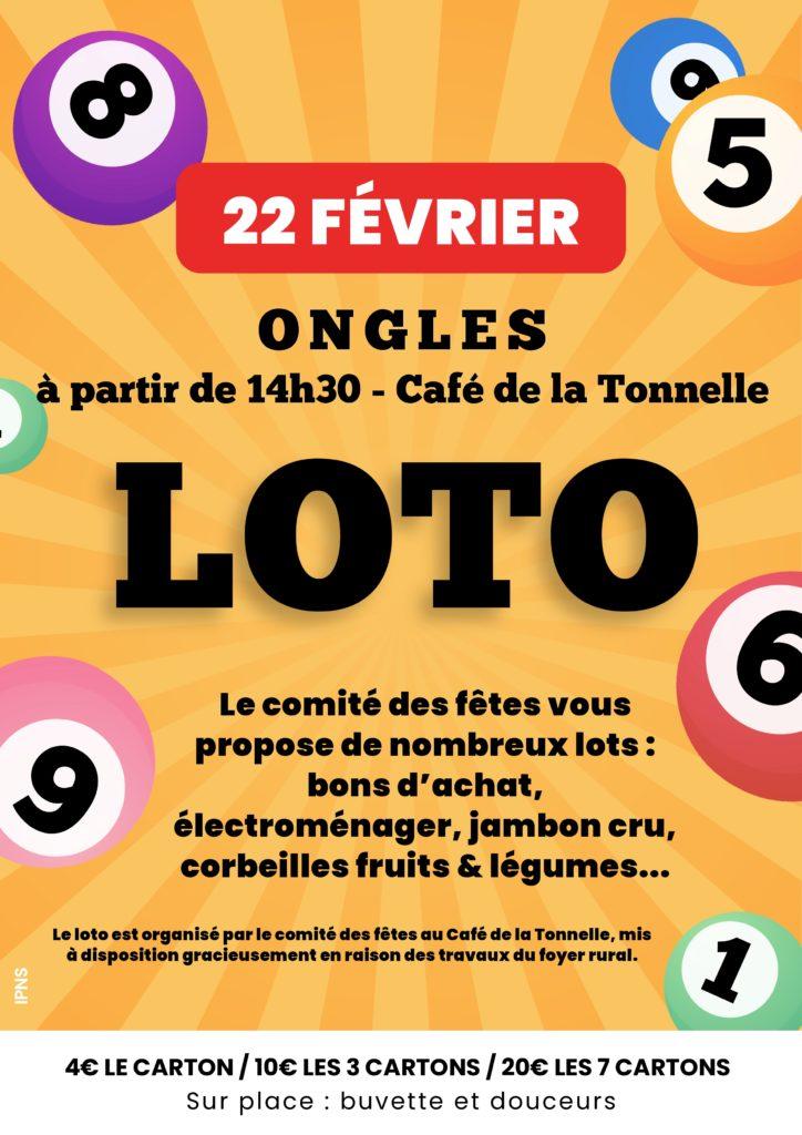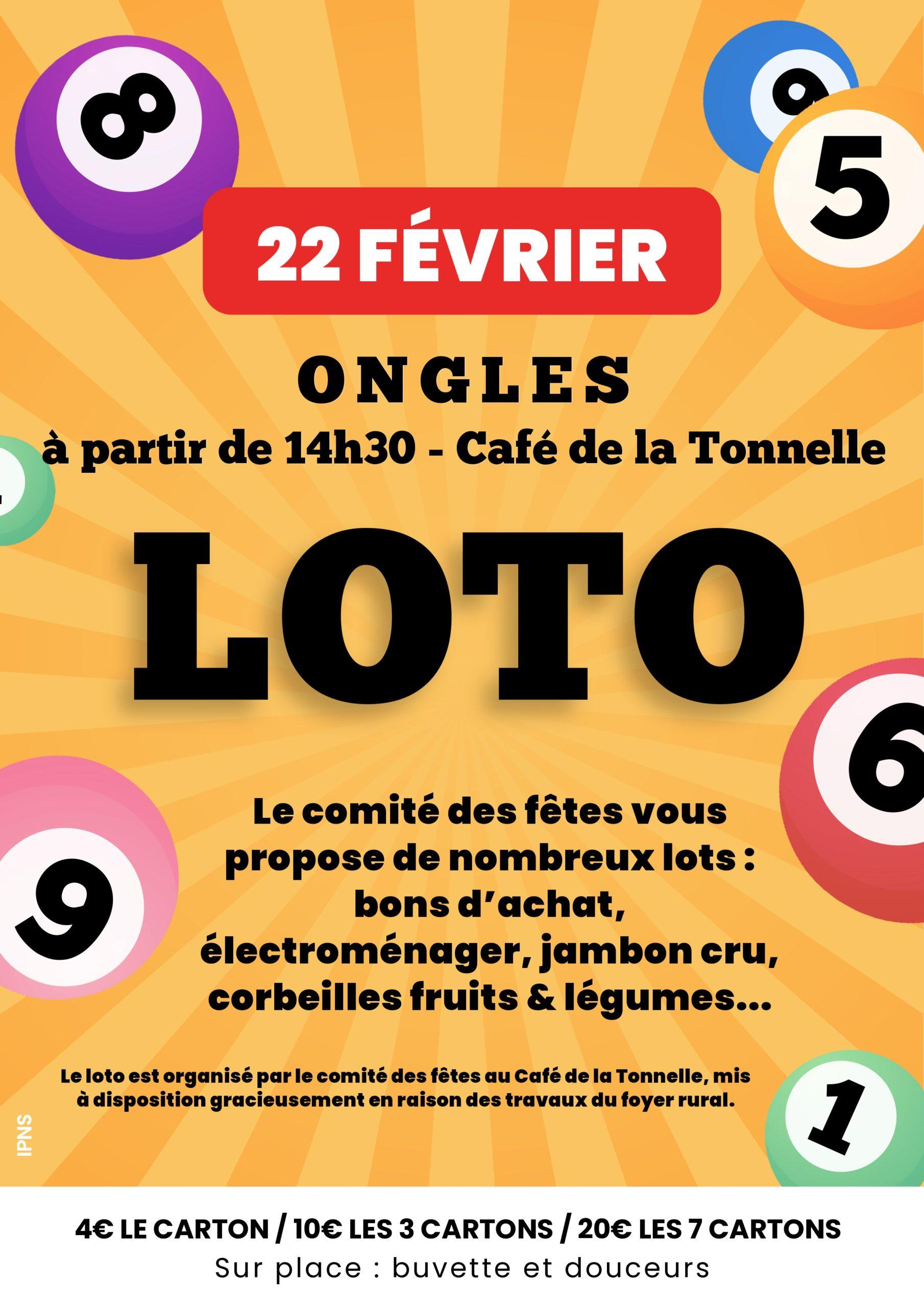 Loto organisé par le Comité des Fêtes le dimanche 22 février 2026 à 14h30 par Mairie d'Ongles | Fév 12, 2026 | Festivités