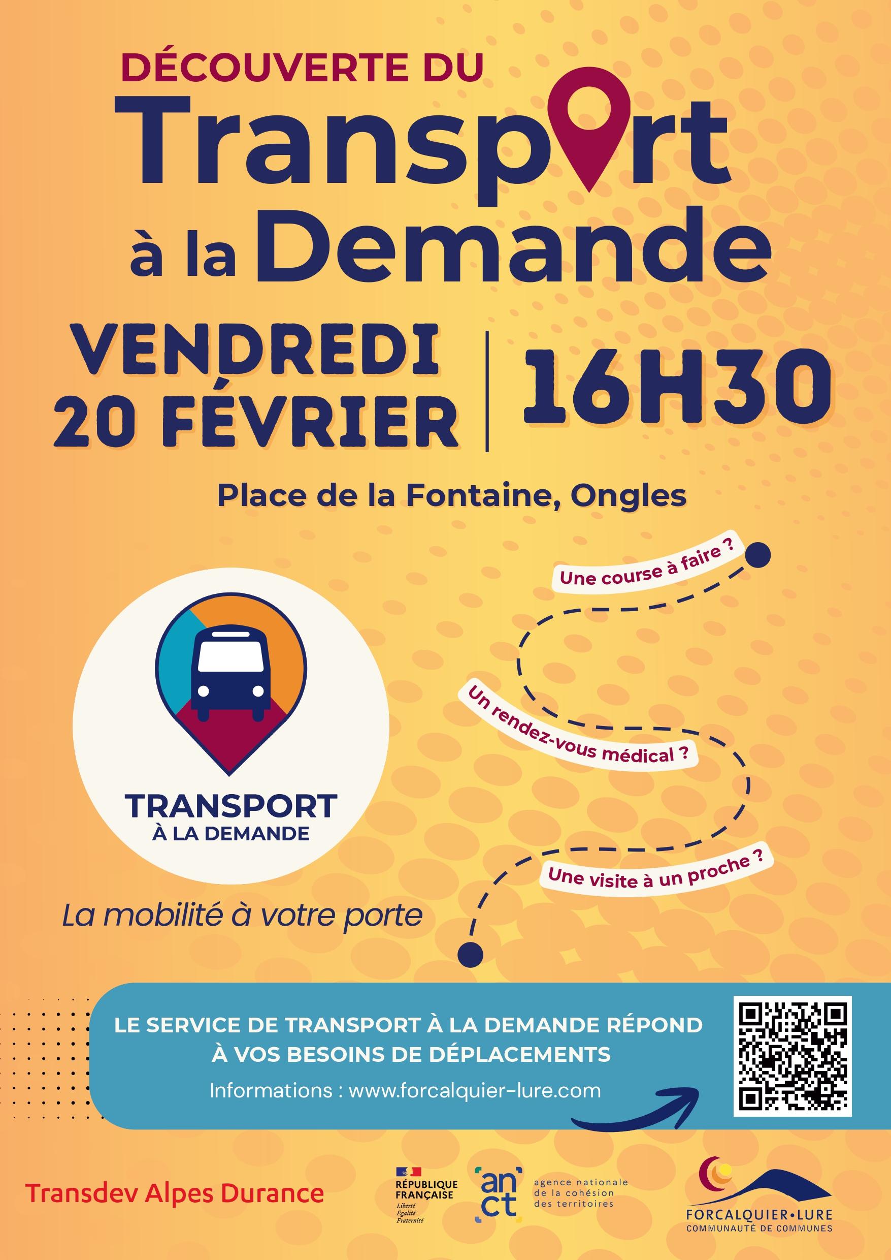Transport à la demande – vendredi 20 février à 16h30 – Place de la Fontaine par Mairie d'Ongles | Fév 12, 2026 | Festivités